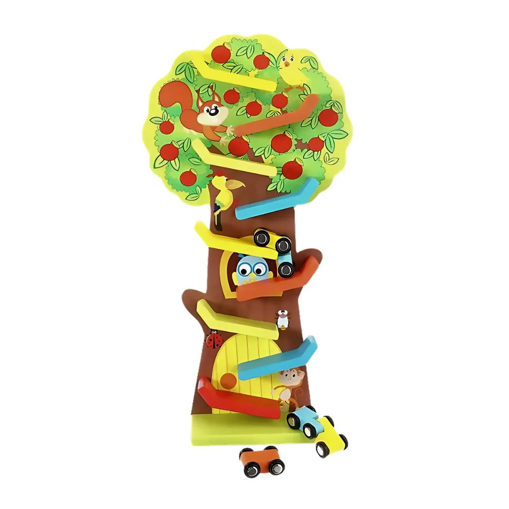 El Árbol Mágico de Carreras invita a niñas y niños a soltar los autitos desde la copa y ver cómo descienden por sus coloridas rampas. Un juguete de madera firme y seguro que estimula el juego libre, la coordinación y la curiosidad con un diseño lleno de animalitos. Ideal para compartir momentos en familia y repetir una y otra vez el recorrido, descubriendo la magia de la causa-efecto.