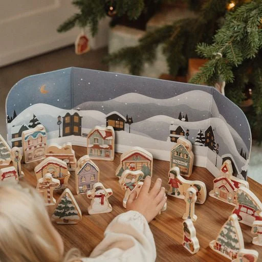 Todas las figuritas están hechas de madera y vienen guardadas dentro de cajitas como si fueran pequeños regalitos, cada cajita es diferente. Y para completarlo, traen de un escenario de cartón ¡¡precioso!!