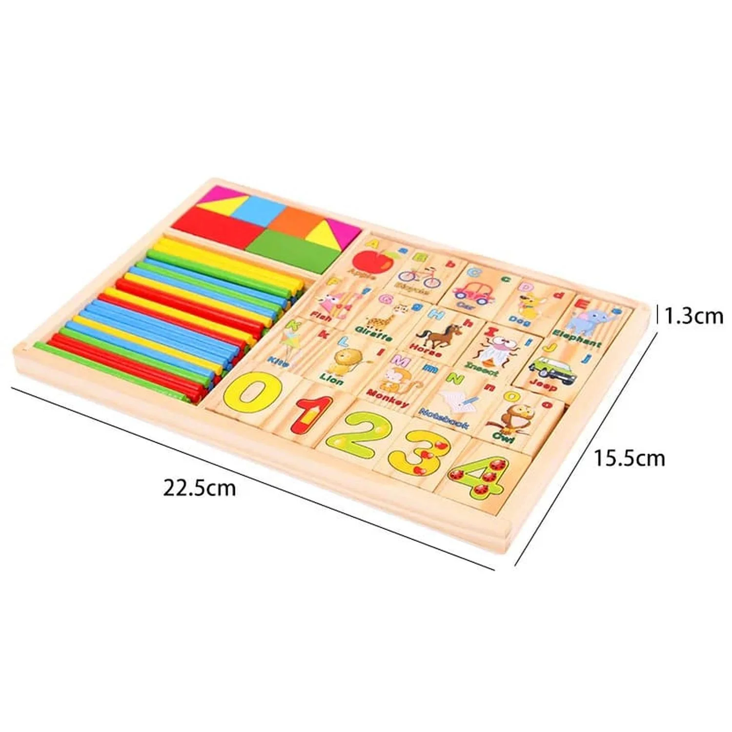 ¡Un set educativo completo y lleno de color para acompañar a los más pequeños en sus primeros aprendizajes! Este Juego Multifuncional de Madera combina letras, números, colores, formas y operaciones matemáticas en una sola caja de actividades. Diseñado para estimular la curiosidad natural de niños y niñas, permite aprender jugando de forma segura, fomentando la exploración, el lenguaje y el pensamiento lógico desde edades tempranas. Ideal para acompañar el juego libre o actividades dirigidas en casa.