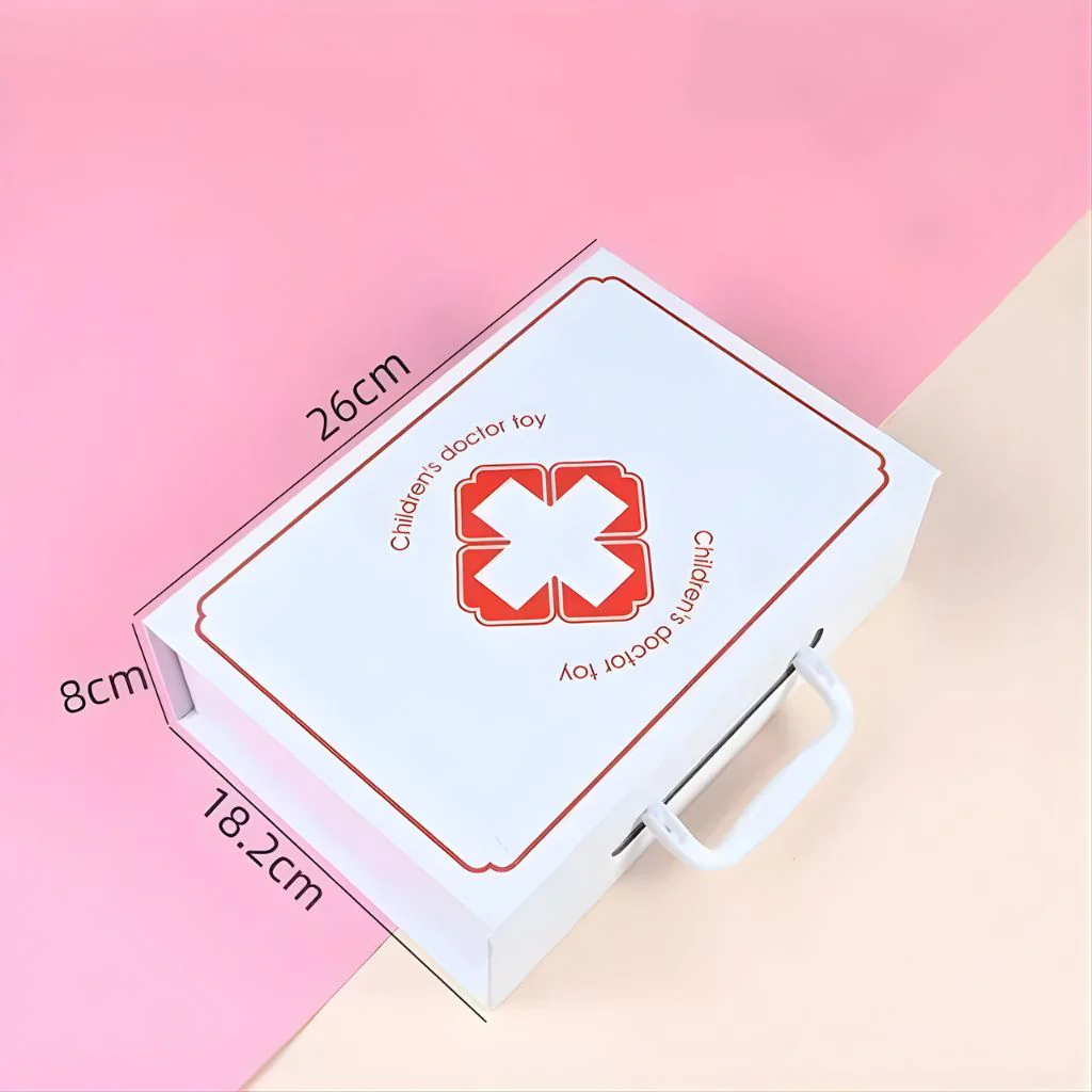 El Maletín Médico Infantil con Accesorios de Madera invita a niñas y niños a jugar a cuidar, explorar y acompañar. Con piezas grandes, colores suaves y bordes redondeados, promueve el juego libre y seguro mientras desarrollan empatía y lenguaje en cada “consulta”. Su maletín portátil mantiene todo ordenado y hace que llevar la clínica a cualquier rincón de la casa sea parte de la aventura.