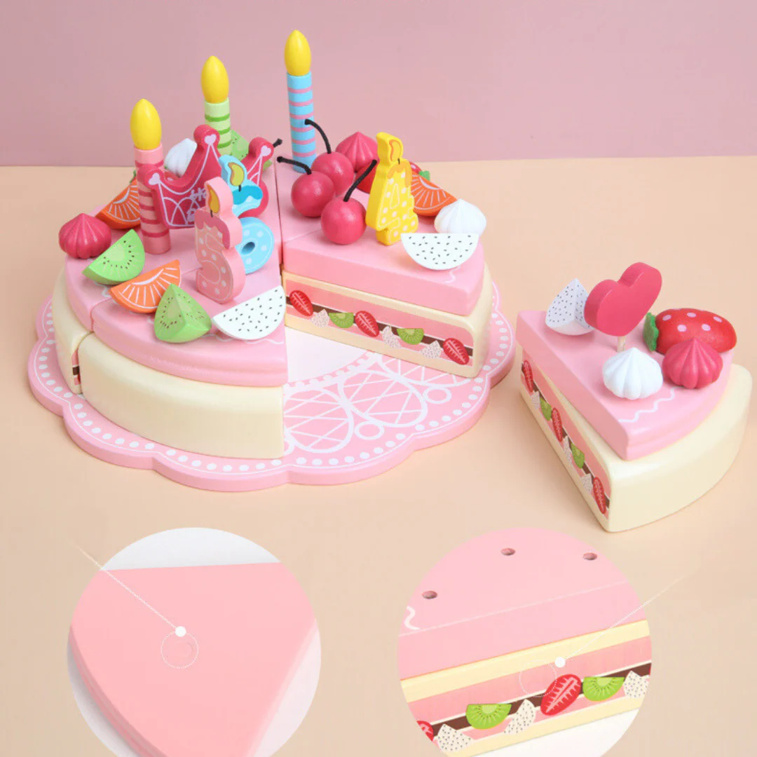 Este pastel de cumpleaños de juguete de 48 piezas es perfecto para que los niños disfruten de juegos de rol mientras celebran su propia fiesta de cumpleaños. Con velas, frutas, números y utensilios de corte incluidos, los pequeños pueden decorar y cortar el pastel, desarrollando su creatividad e imaginación.