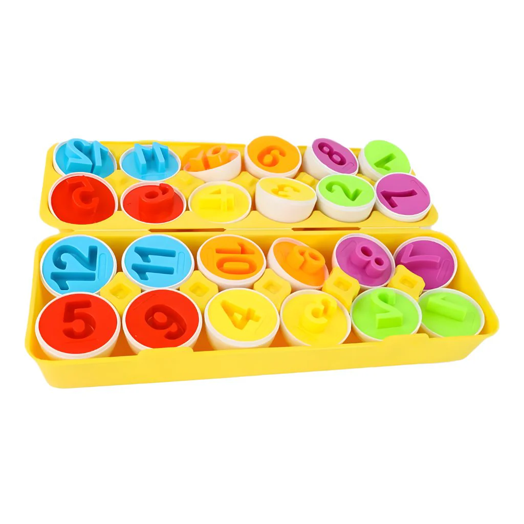 Un juego irresistible para aprender jugando: estos huevitos se abren en dos mitades y cada una encaja con su par formando números del 1 al 12 en colores vivos. Favorece el juego libre y actividades guiadas, con piezas seguras y fáciles de manipular por manos pequeñas. Ideal para introducir conteo, clasificación y reconocimiento de colores en casa o en el jardín infantil.