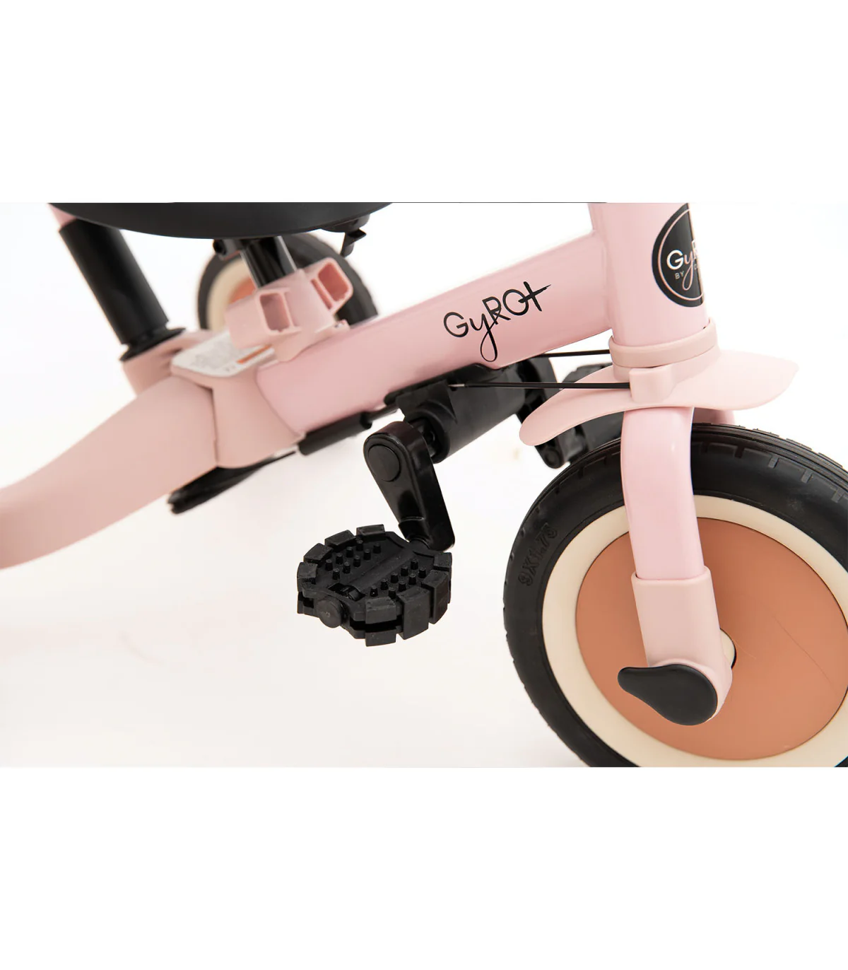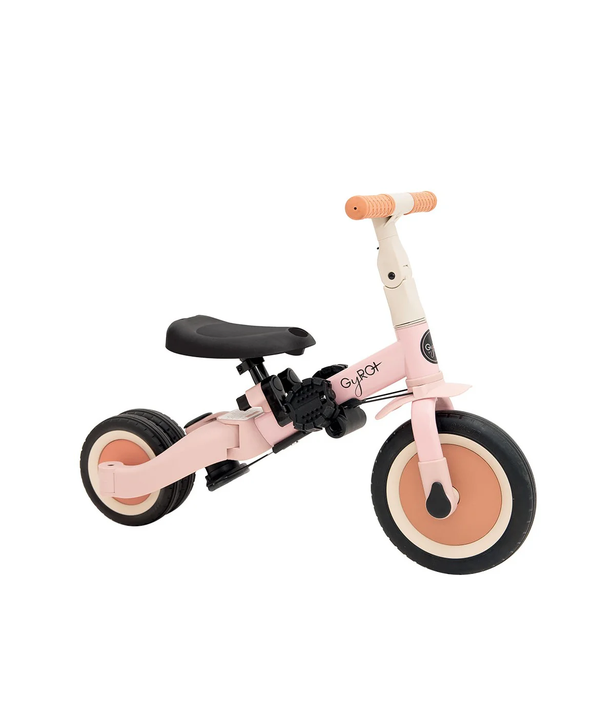Diseñado para ofrecer la máxima comodidad y seguridad, incluye una práctica capota que protege a los más pequeños del sol para disfrutar de los paseos al aire libre sin preocupaciones. Además, su aro de protección añade una capa extra de seguridad para que el niño esté siempre seguro mientras explora su entorno. Y al igual que su hermano mayor Gyro, se adapta a las diferentes etapas del crecimiento del bebé, permitiendo su uso como triciclo guiado y, posteriormente, como triciclo y bici independiente.